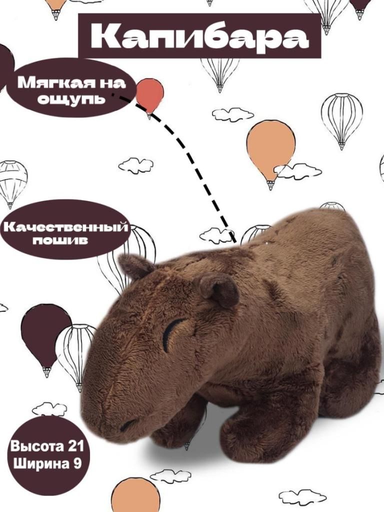 Капибара мягкая на ощупь коричневая 20x10x9см
