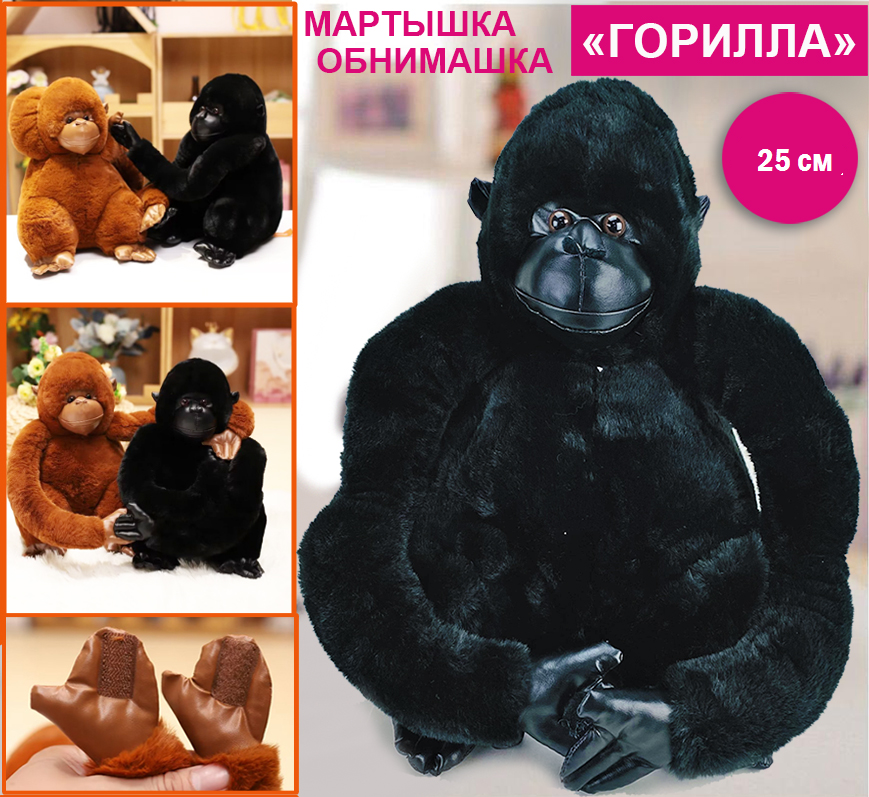 Мягкая игрушка Горилла обнимашка черная 25см
