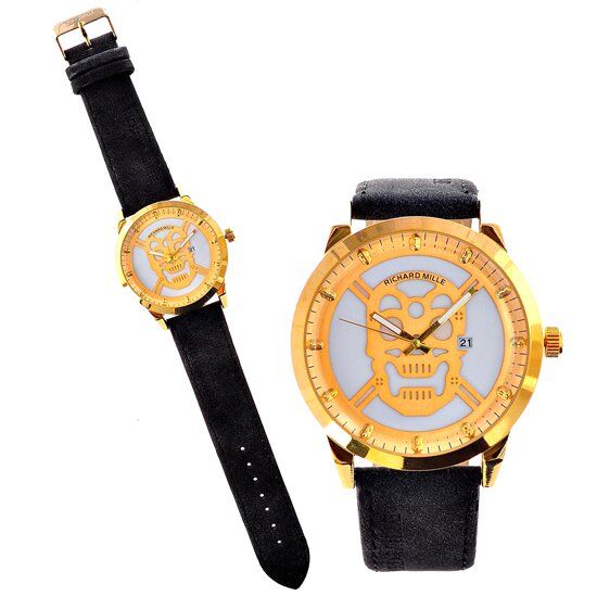Часы с круглым циферблатом с ремешком из эко-кожи.