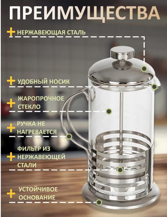 Для насыщенного и ароматного кофе используйте свежемолотые зерна крупного помола — около 60 г на 1 литр воды с температурой примерно 92°C. Залейте водой, дайте настояться 4-5 минут, медленно опустите поршень — и наслаждайтесь идеальным напитком.