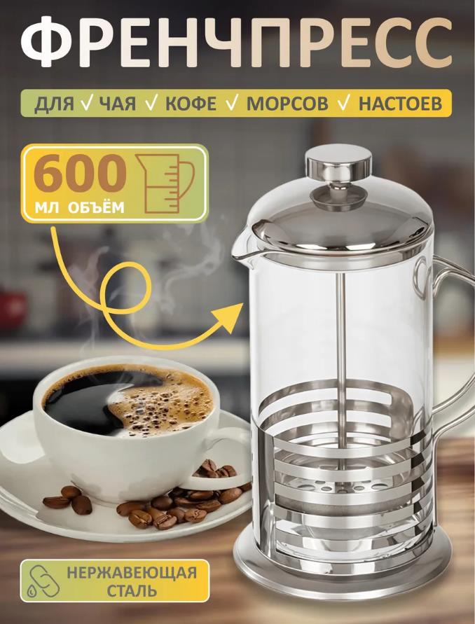 Чайник для заваривания Чая, Кофе. Френч пресс 600 мл