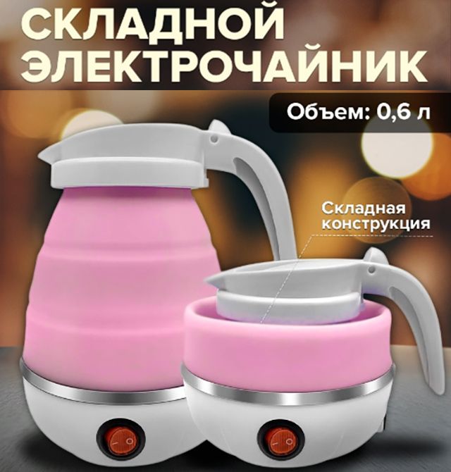Чайник складной электрический силиконовый 0,6л / Дорожный электрочайник 220V