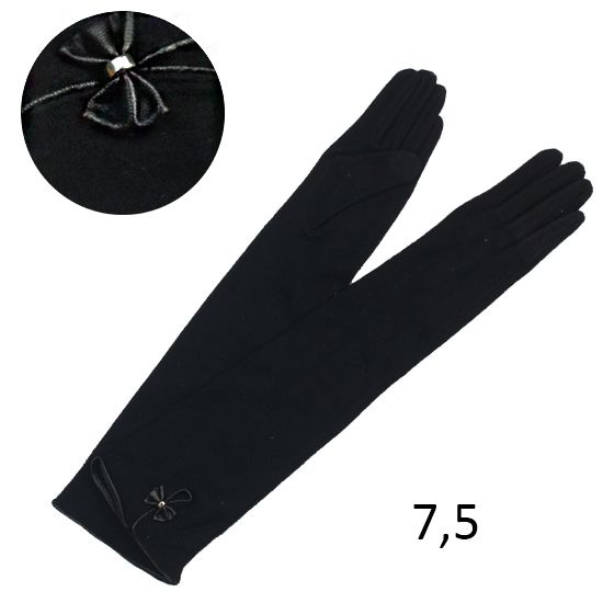 Женские кашемировые перчатки черного цвета с декоративным бантиком 50см