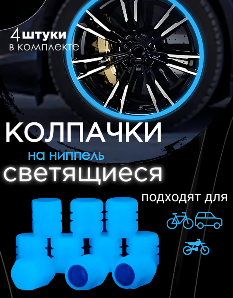 Колпачки СИНИЕ на колеса фосфорные светящиеся