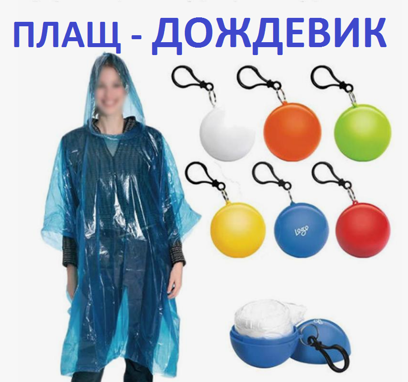 Дождевик с капюшоном универсального размера, упакован в контейнер-брелок (диаметр 6 см) и крепится посредством карабина. Помещается в карман, идеально дополнит сумку, рюкзак или емкость для питья.