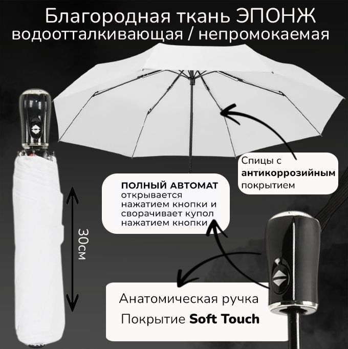 Зонт автомат белоснежный, качество Премиум