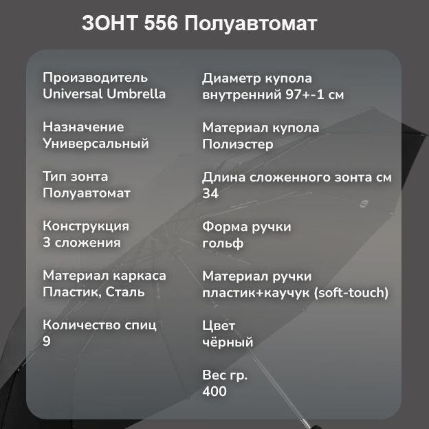 Зонт Universal Umbrella полуавтомат чёрный, 556 ручка гольф