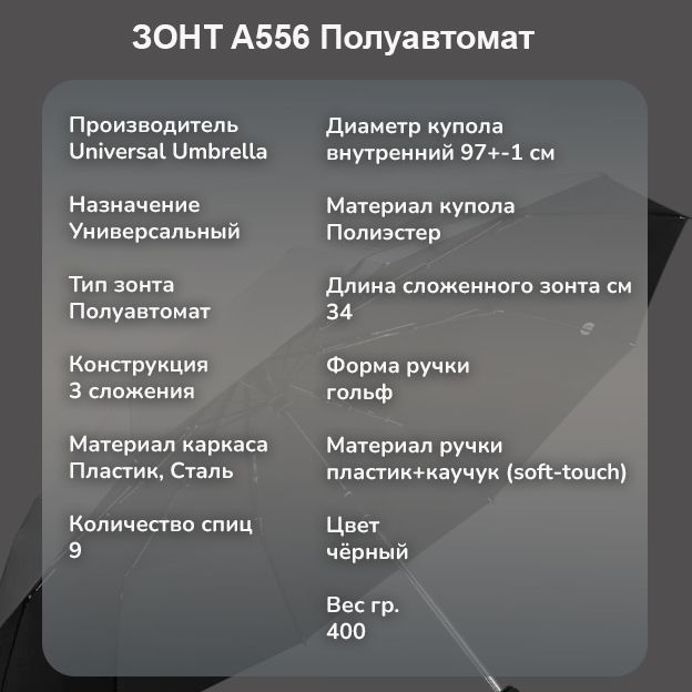 Зонт Universal Umbrella полуавтомат чёрный, A556 ручка гольф