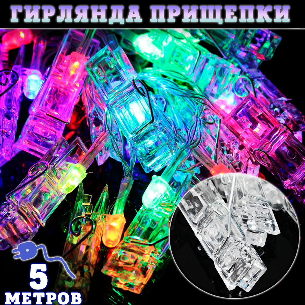 Гирлянда прищепка для фото 5 метров (УВЕЛИЧИВАЕМАЯ В ДЛИНЕ) - лучшее решение для вашего интерьера! Украсьте свой дом необычной фото-гирляндой! Все ограничивается лишь Вашей фантазией. Прищепками можно закрепить не только фото, но и какую-нибудь надпись, состоящую из отдельных букв, в честь любого праздника. Свадьба, день рождения, новый год, просто вечеринка и т.д... Каждая прищепка содержит светодиод, который излучает свет, создает уют в любом интерьере.Гирлянда питается от сети 220В.ГИРЛЯНДУ МОЖНО УВЕЛИЧИТЬ В ДЛИНЕ!, подключив еще одну гирлянду в цепь через специальный выход, который идет в комплекте с гирляндой.Вы легко превратите обычную стену в место, которое притягивает взгляд! И для этого не нужно быть дизайнером. Создавайте дома уют! Гирлянда с прищепками лучшее решение для подарка!