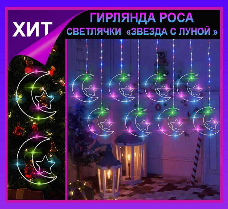 Гирлянда Роса -светлячки "Звезда с луной "