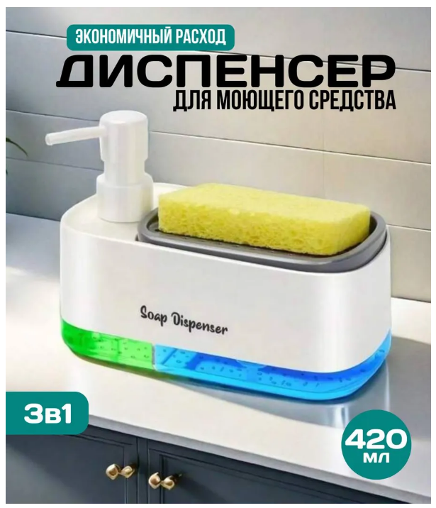 Диспенсер с дозатором для жидкого мыла 3в1