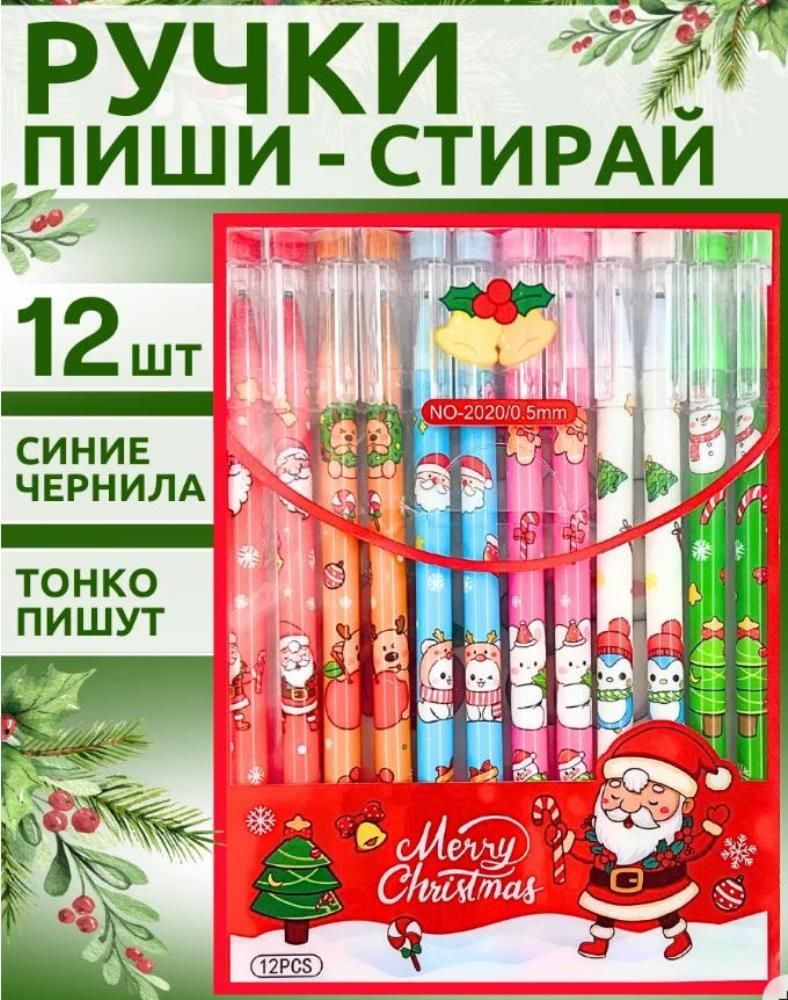 Ручки пиши стирай рождественские, гелиевые синие чернила