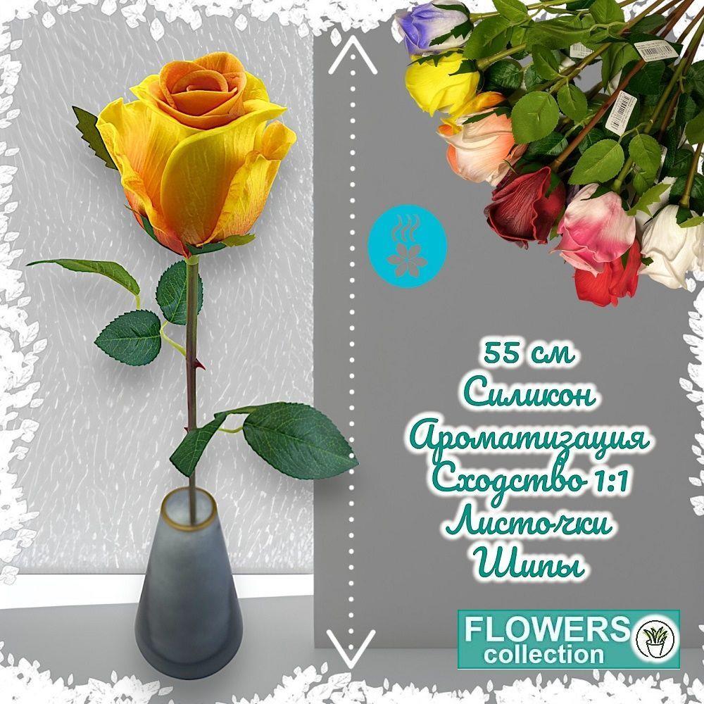 Роза силиконовая ароматизированная 55см, цвет оранжевый