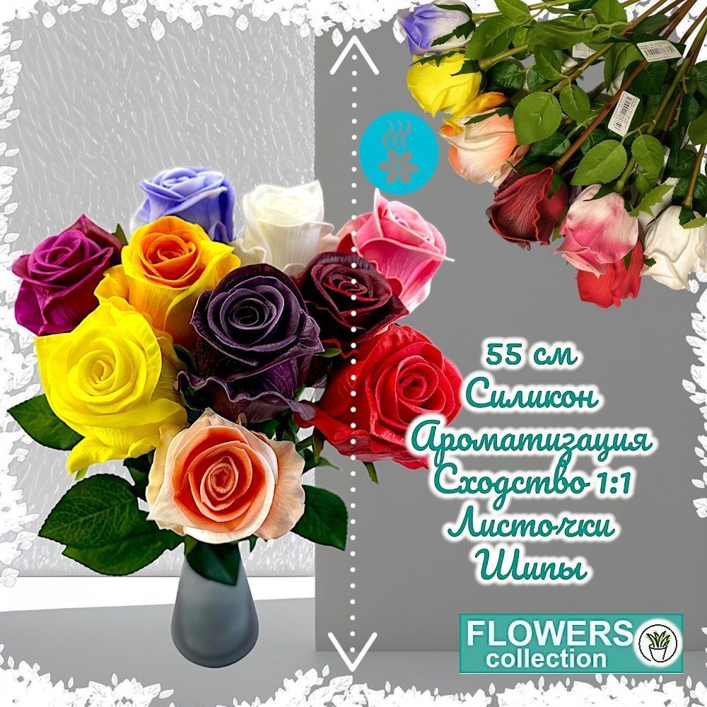 Роза силиконовая ароматизированная 55см, цвет розовый