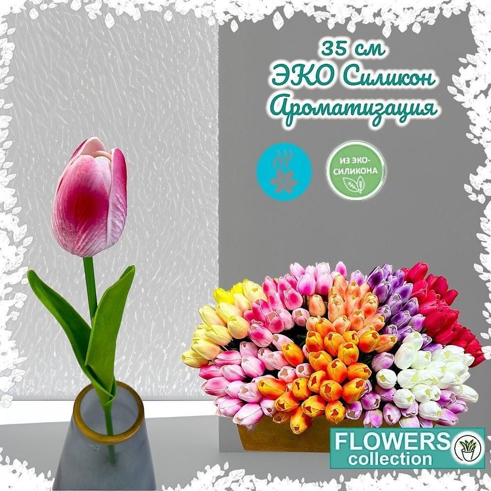 Тюльпан розовый 35см, ЭКО силикон