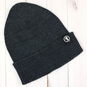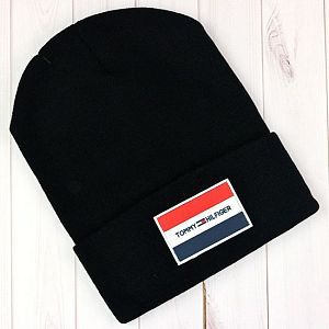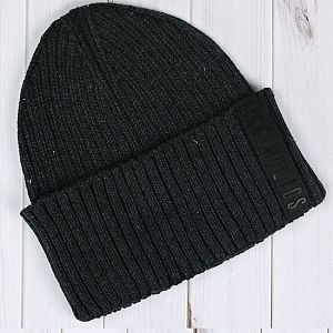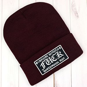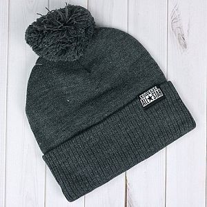 Молодёжная шапка из акрила. Модель с отворотом и помпоном, декорирована патчем с изображением логотипа.