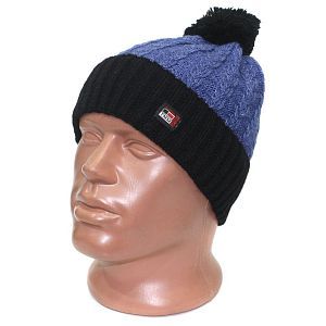 Молодежная шапка с отворотом и помпоном
