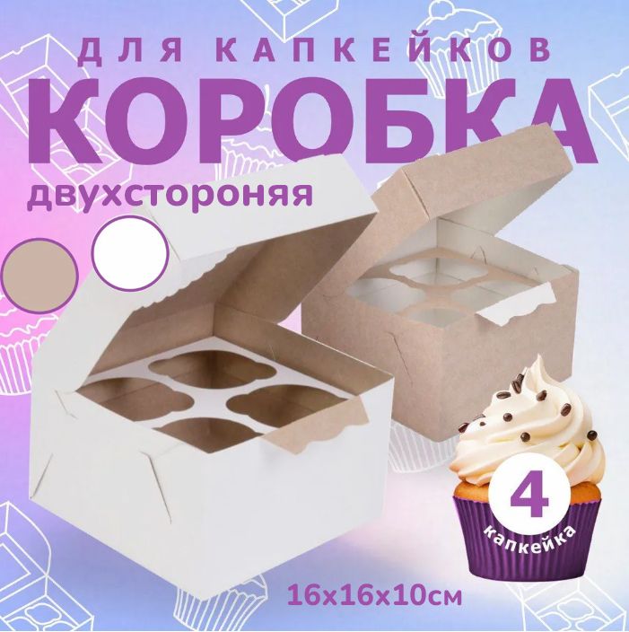Коробка для капкейков и маффинов 16х16х10 см