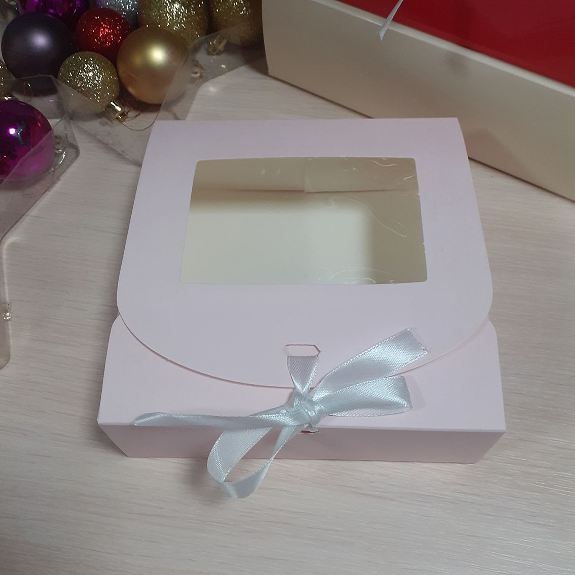 Коробка подарочная нежно розовая 16х16х5см