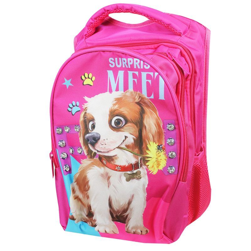 Рюкзак для девочек с собачкой розового цваета со стразами