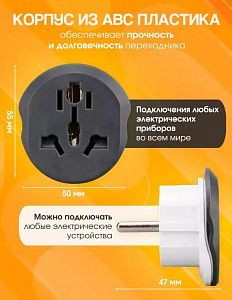 Сетевой переходник на евро вилку предназначен для подключения устройств со штекером UK/US/CN к обычной российской (европейской) розетке типа C, что значительно упростит эксплуатацию бытовых приборов в любой стране мира.