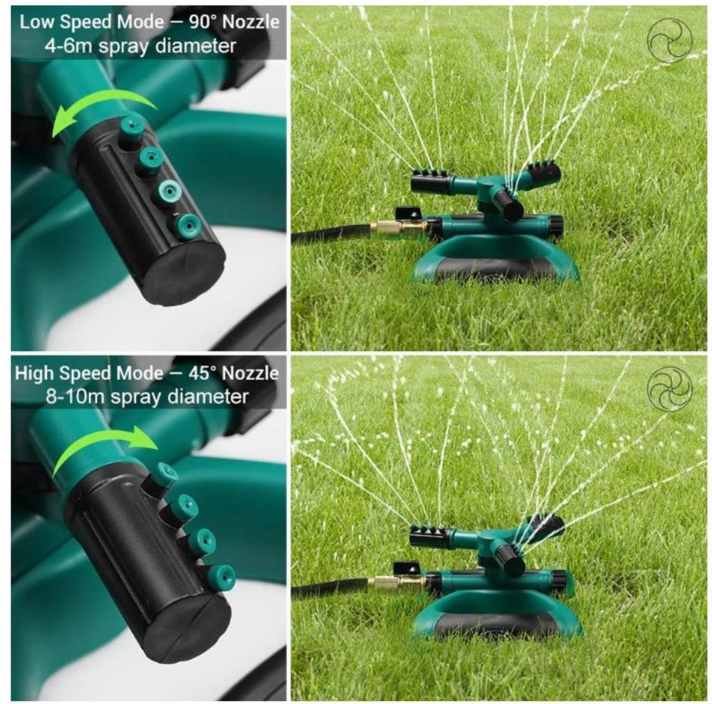 Разбрызгиватель для полива газона, сада и огорода также оснащен быстросъемным штуцером, что позволяет легко подключать ее к водопроводу или использовать со шлангом. Этот разбрызгиватель может поливать площадь до 100 метров квадратных.
