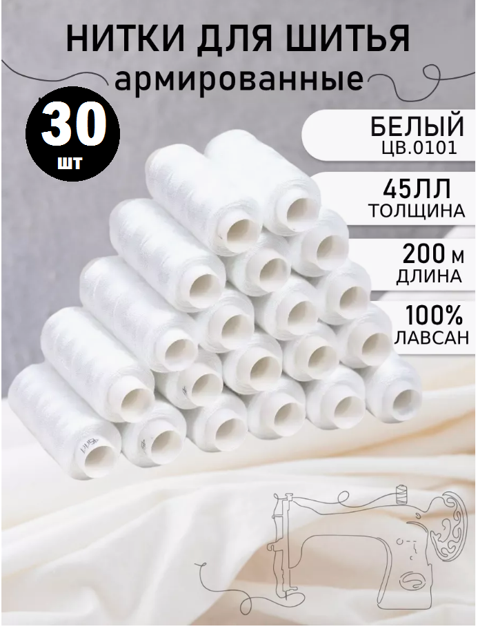 Нитки швейные белые, 100% полиэфир