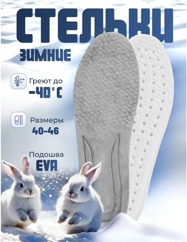 Теплые зимние меховые стельки для обуви мужские 40-46