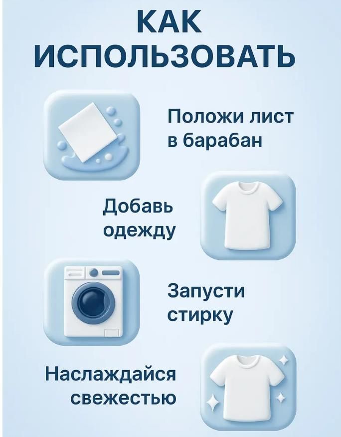 Подходят для ручной и машинной стирки. Салфетки не оставляют следов и не требуют дополнительных действий — просто положите их в барабан стиральной машины вместе с бельём.