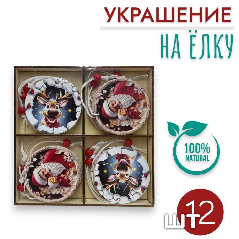 Елочные украшения Деревянные подвески на елку 12шт