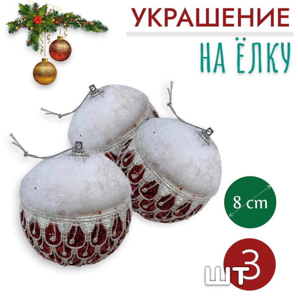 Шары 3штХ8см, украшение на ёлку ручной работы