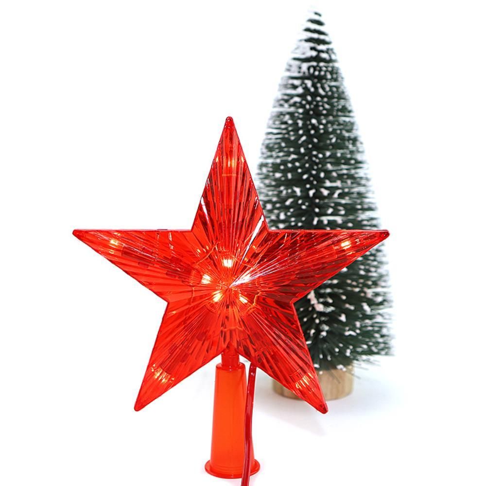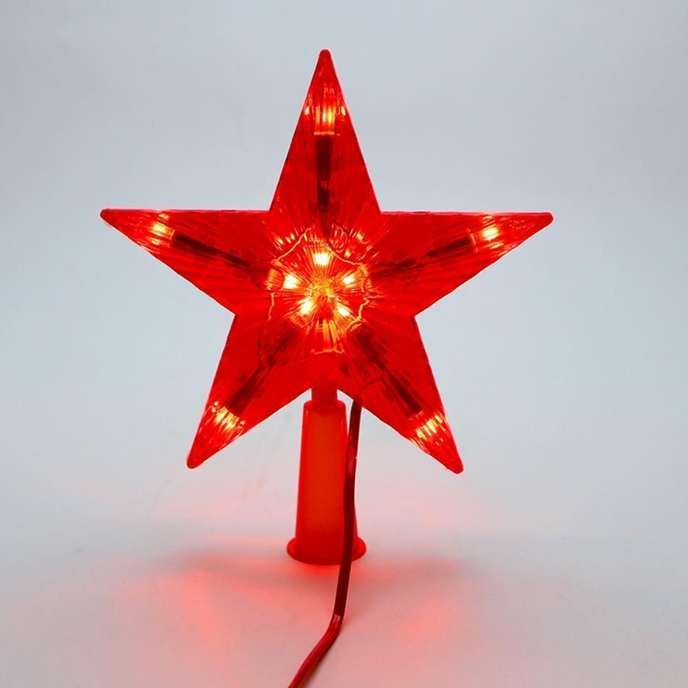 Красная светодиодная звезда для украшения новогодней елки. Есть крепление для фиксации в виде колпачка.