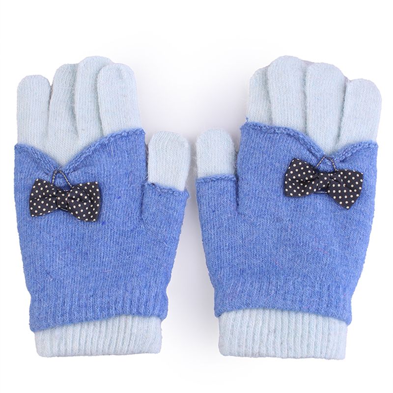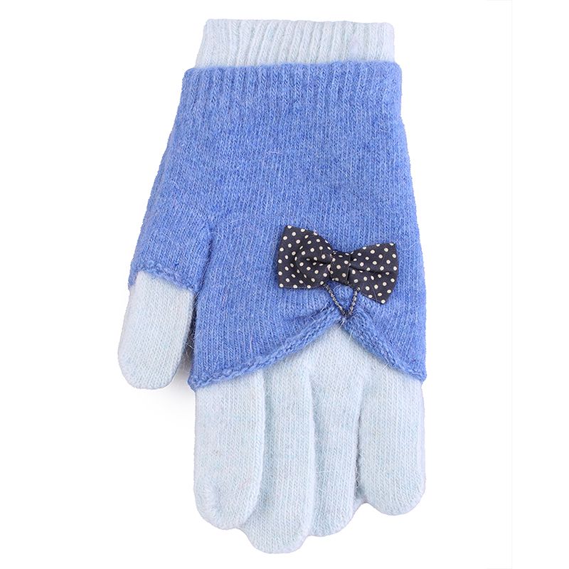 Перчатки трикотажные детские двойные, украшенные бантиком.
